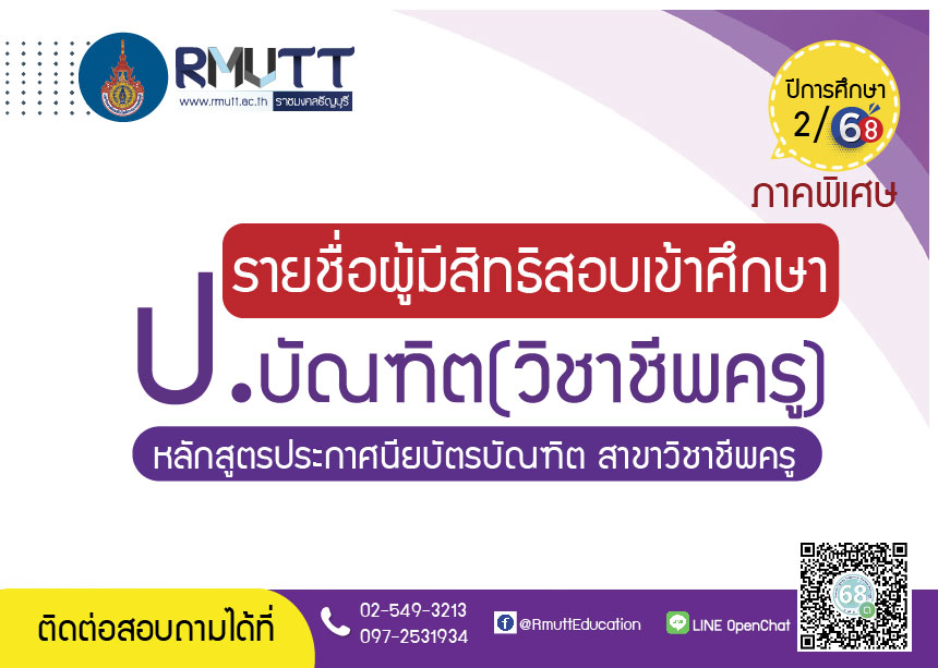จะแจ้งให้ทราบผ่าน www.grad.rmutt.ac.th