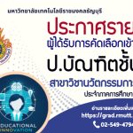 เรื่อง รายชื่อผู้ได้รับการคัดเลือกเข้าศึกษาต่อระดับบัณฑิตศึกษา